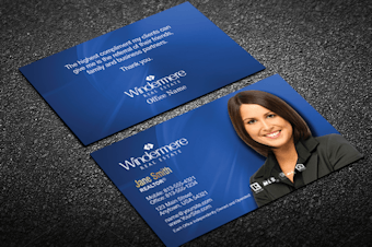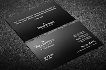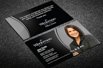 Realty Cards offers a dozens of possibilities when it comes to designing a Windermere real estate agent business card. Whether you are a real estate agent or broker, the one thing that separates you from your competition is the creative Windermere real estate business card designs. Choose from dozens of Windermere real estate business card templates above, and we guarantee that you will not be disappointed!